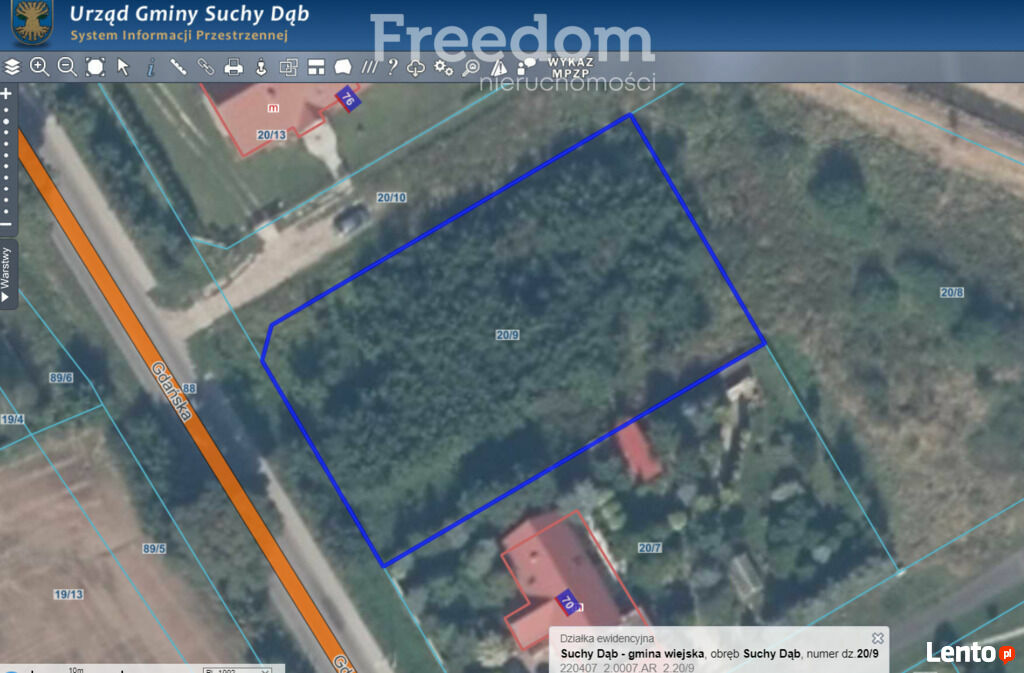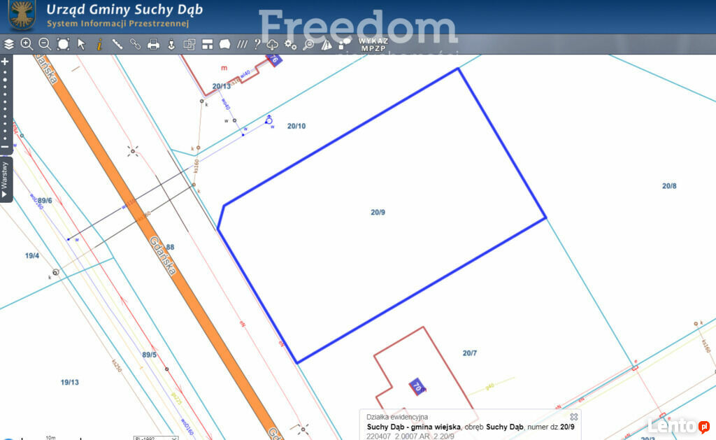 - działka o numerze ewidencyjnym 20/9 o powierzchni 1 495 m2;