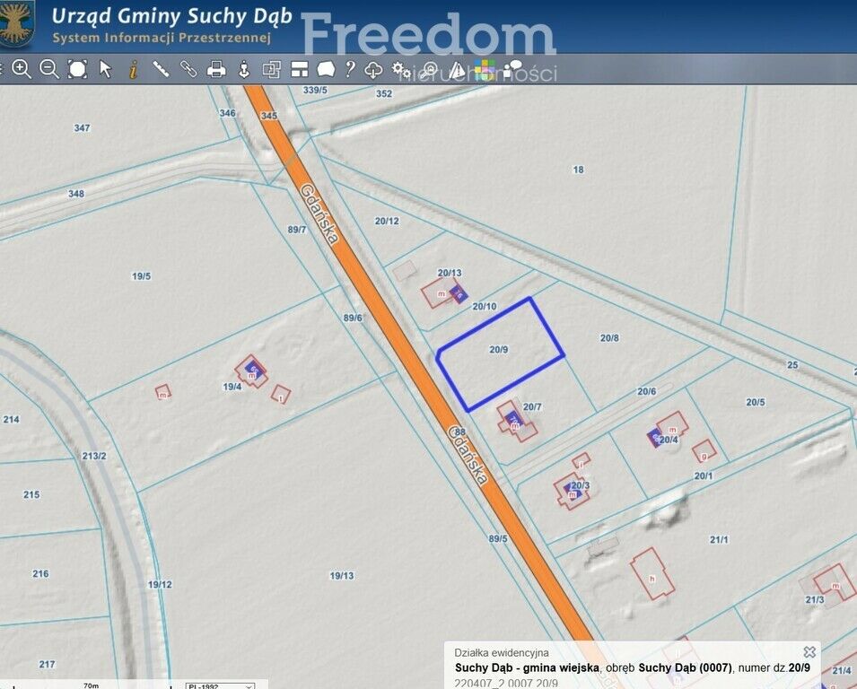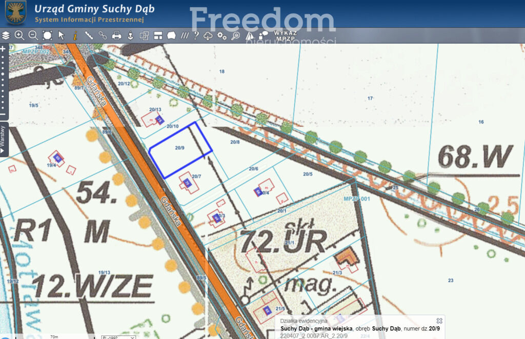 - usytuowanie działki – Suchy Dąb, ul. Gdańska, powiat gdański